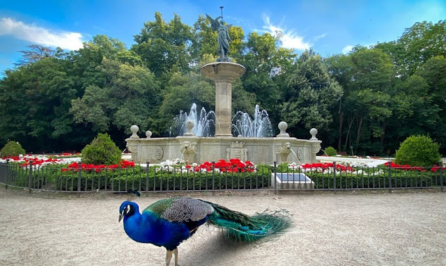 Nosotros nos encontramos con un hombre mayor dando de comer en su mano a las ardillas, cosa que es muy normal allí y los pavos reales ni se asustan cuando les haces fotos. Dentro del parque hay entre otras cosas una pequeña cascada en un estanque con una gruta, la estatua de la fuente de la fama y la fuente del cisne.